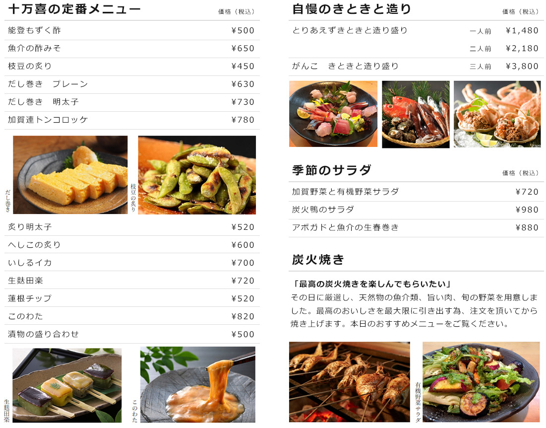 旬炉 十万喜|金沢駅前徒歩3分|厳選した肉、魚介を炭火焼き